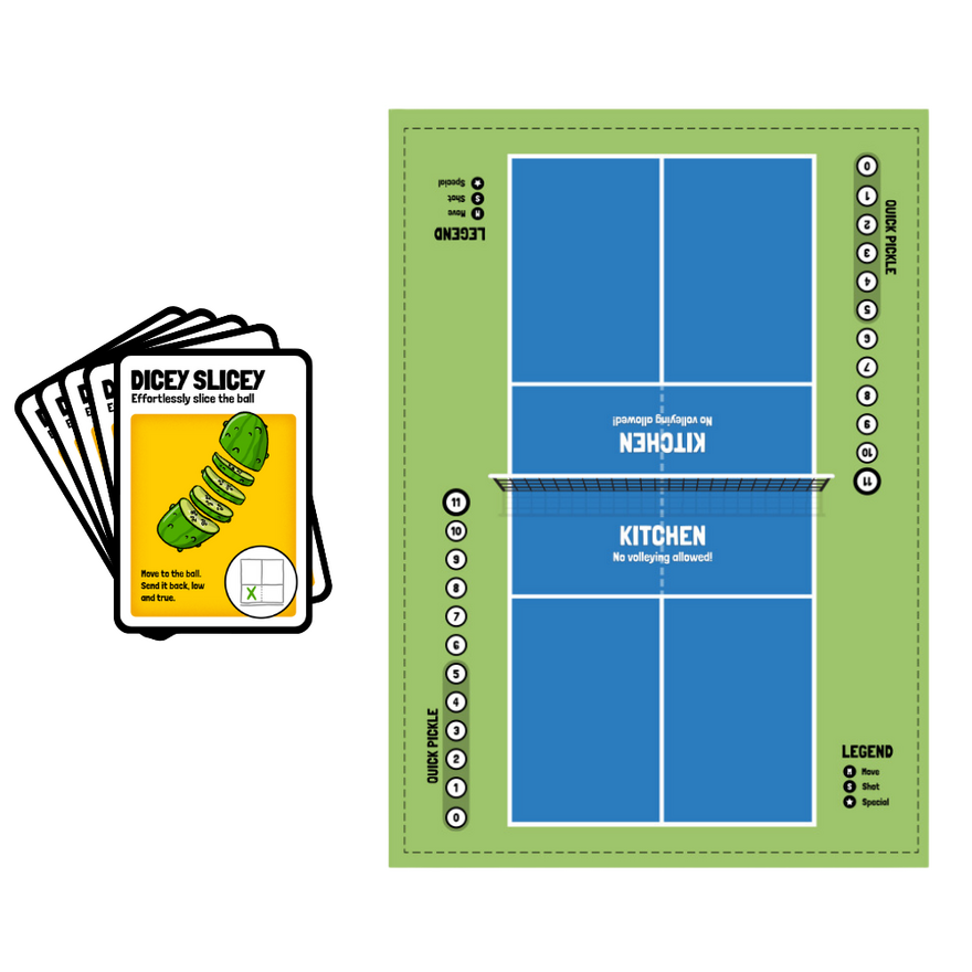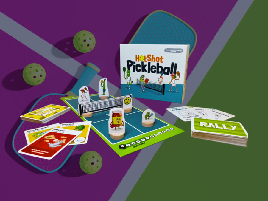 HotShot Pickleball brings pickleball-themed fun, competition, and a little bit of trash-talking to your next game night.A fast-paced game with rallies, slams, slices and long-shots. Just remember: don't volley in the kitchen!Each character brings a special skill. Choose between all-stars like Kim Chee, Sally Kraut, and Corny Shawn, and make sure they're brined and ready!